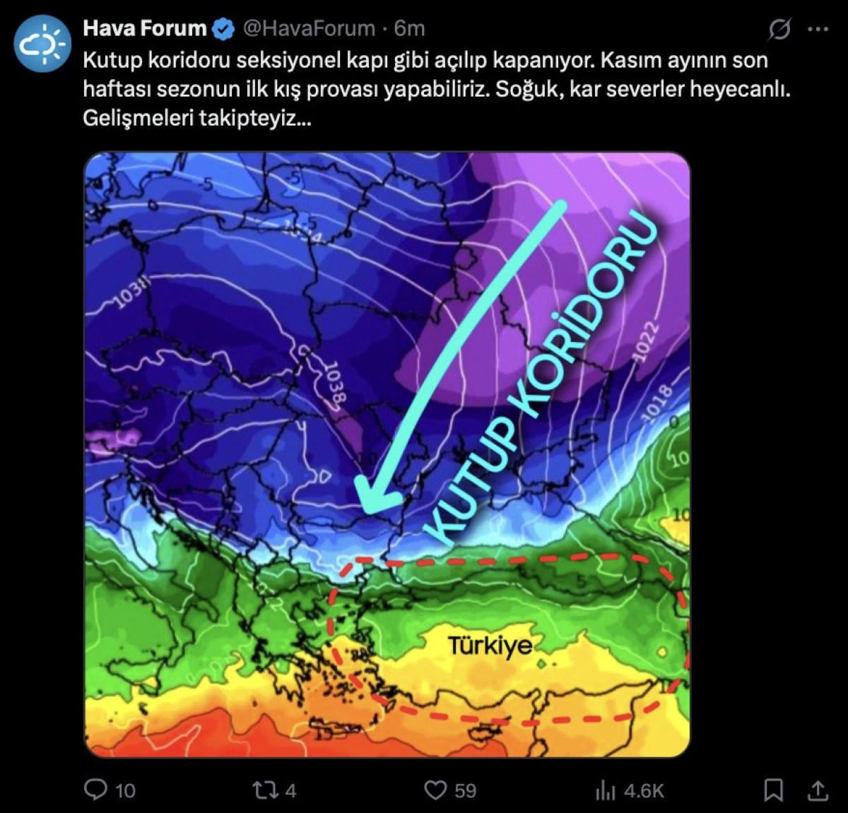 - Hava Forum, bu dönemin kış mevsiminin ilk belirtisi olabileceğini belirtti.