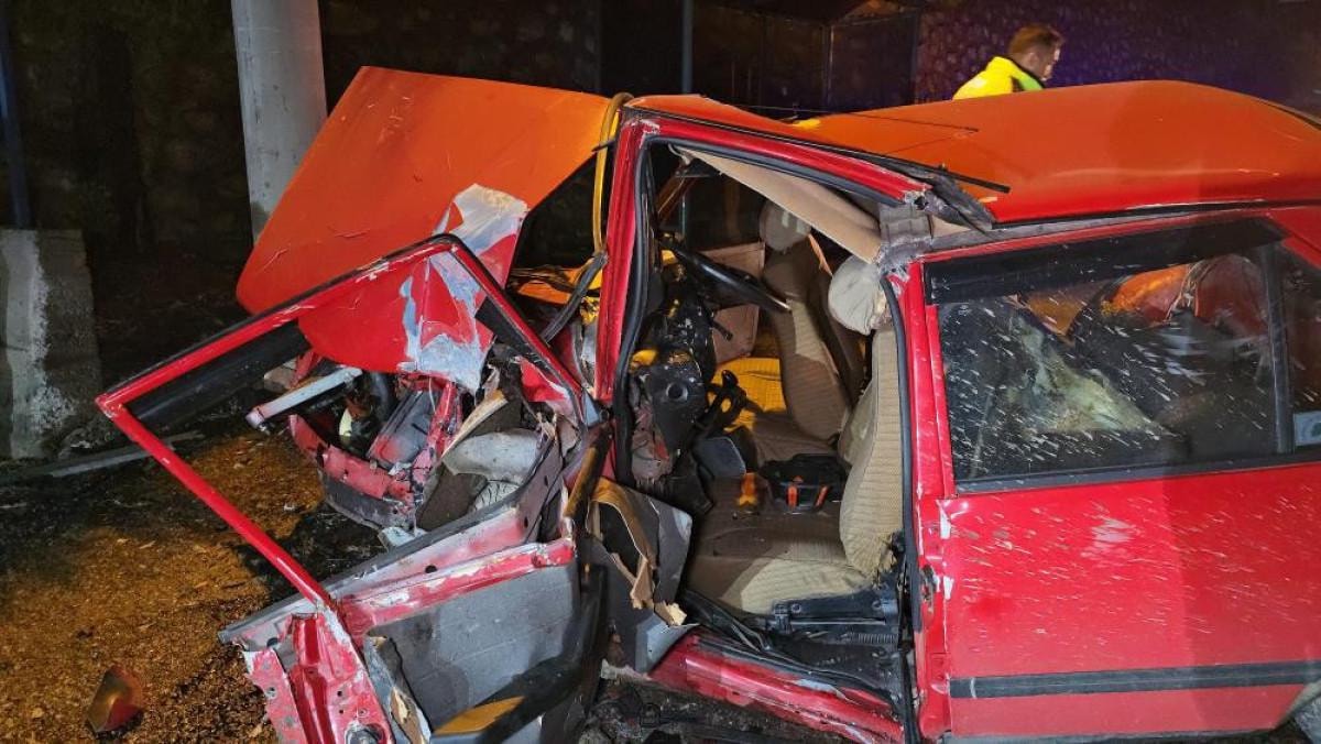 Bu sırada cadde üzerinde hız yapan gençlerin bulunduğu otomobil önce evin istinat duvarına ve sonrasında beton elektrik direğine çarptı.