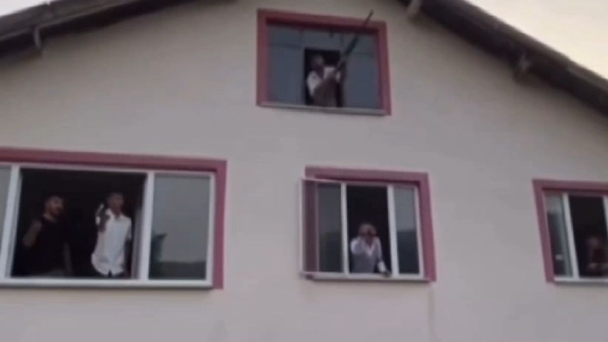 Eskipazar ilçesinde geçen hafta düzenlenen düğüne katılan davetlilerin bazıları tüfek ve tabancalarla havaya ateş etti.