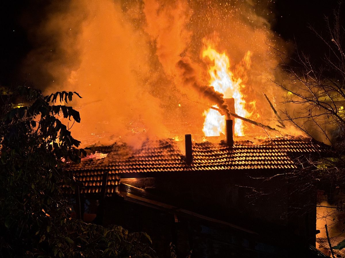 YANGIN 2 SAATTE SÖNDÜRÜLDÜ, 150 YILLIK AHŞAP EV KÜL OLDU