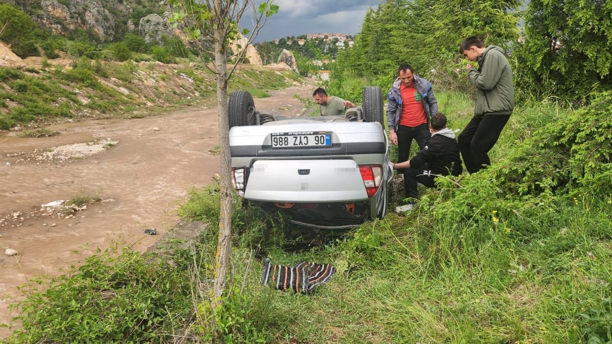 Karabük’te Eskipazar ilçesi Tamuşlar köyü yolunda A.T. idaresindeki 06 CYZ 886 plakalı otomobil, Karabük istikametinden Tamuşlar köyüne seyir halindeyken sürücünün direksiyon hakimiyetini kaybetmesi sonucu yoldan çıkarak dere kenarına devrildi. Kazada araç ters döndü.