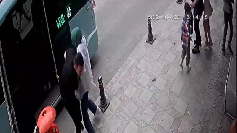 O anlar bir iş yerinin güvenlik kamerasına yansıdı. Görüntülerde iki çocuğun olaydan kıl payı kurtulduğu, minibüsten inen yolcularında düşen parçalar nedeniyle neye uğradıklarını şaşırma anları yer aldı.