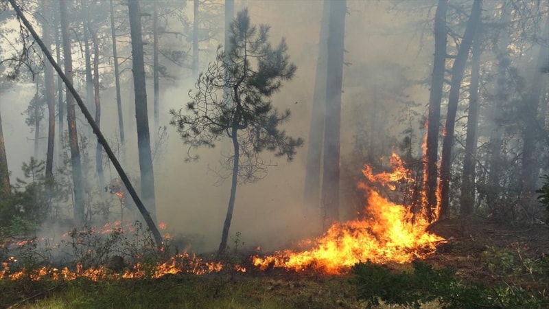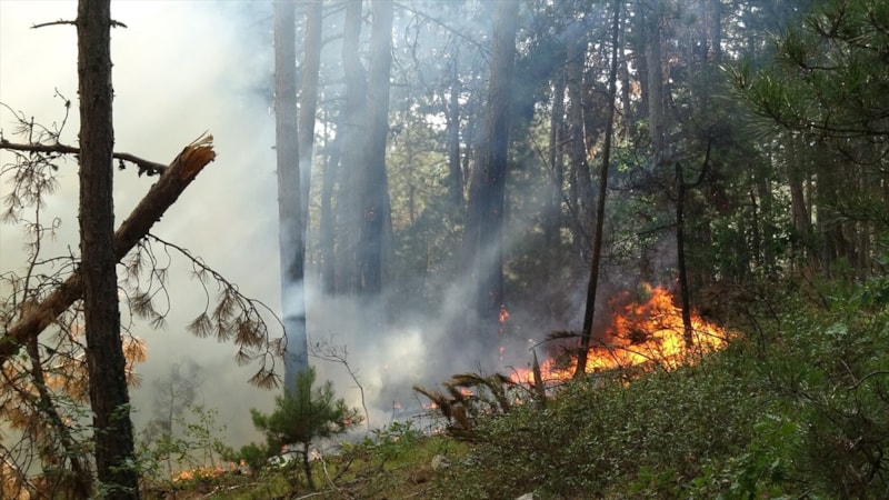Yangını görenlerin ihbarı üzerine bölgeye itfaiye, Orman Bölge Müdürlüğü’ne bağlı arazözler ve yangın söndürme helikopteri sevk edildi.