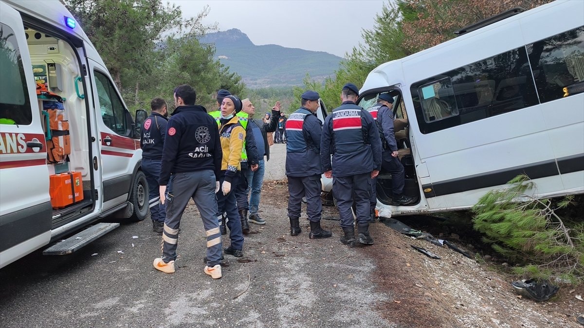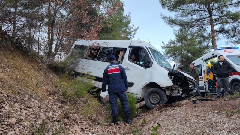 Güneşli köyü yoluna sürüklenen ve burada toprak zemine çarparak duran minibüsteki sürücü ile araçta bulunan 16 Senegalli öğrenci yaralandı.
