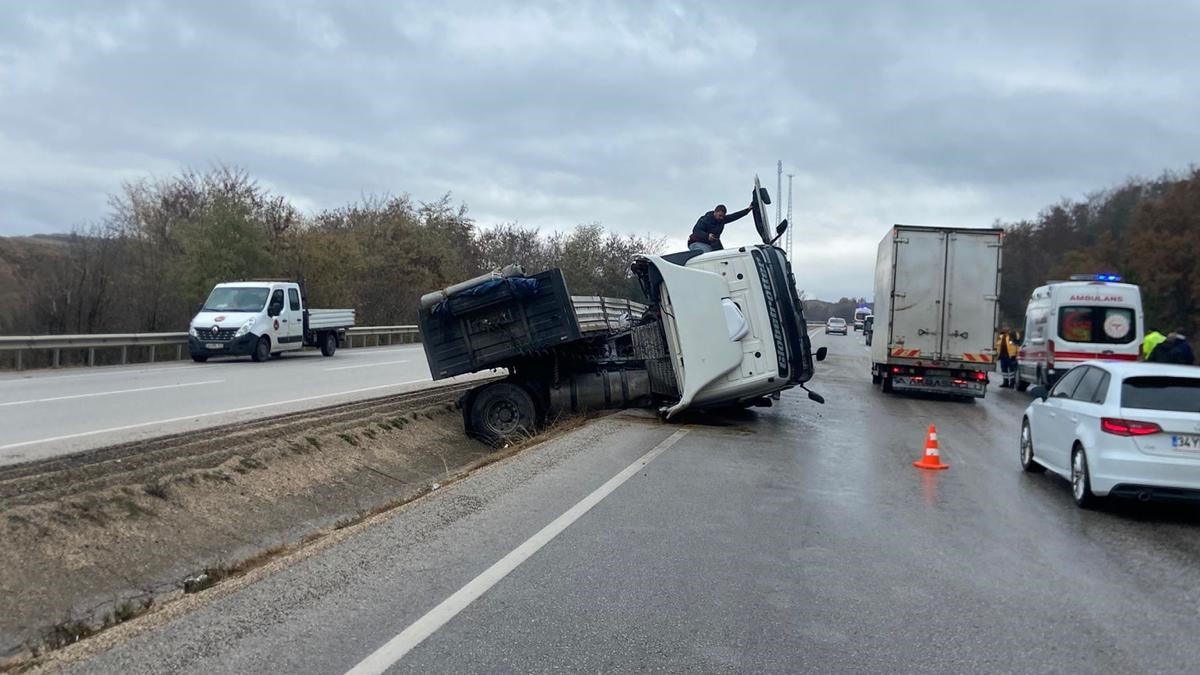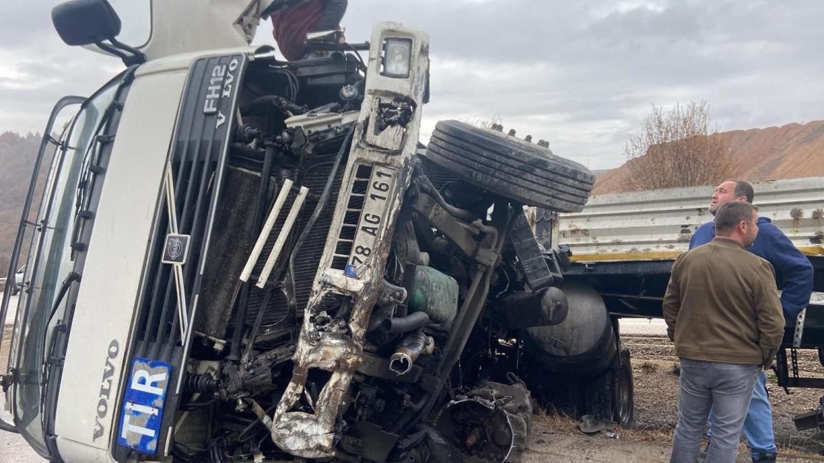 Karabük'ün Eskipazar ilçesinde Söğütlüçeşme mevkiinde Ö.Ö. idaresindeki 78 AG 161 plakalı tır, sürücüsünün kontrolünden çıkarak su kanalına düşerek devrildi.