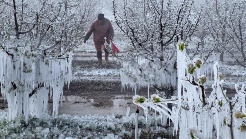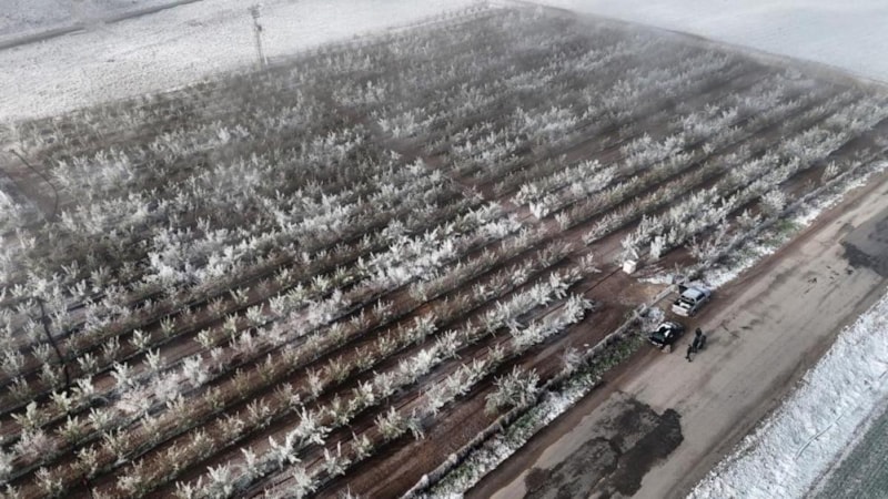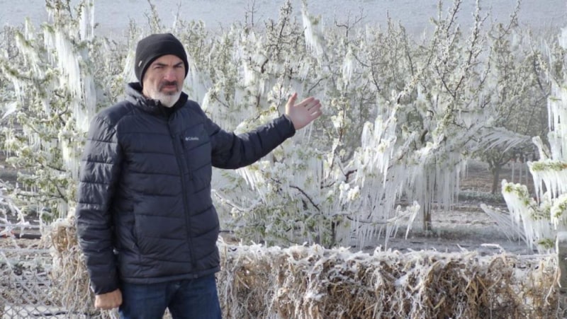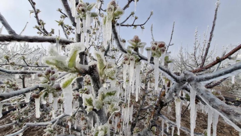 Dünden beri arazilerdeyiz ve zirai don nedeniyle çok yüksek bir hasar bekliyoruz. Üreticilerimiz, elma ağaçlarını korumak için ateş yakarak, sulama yaparak büyük çaba gösterdi. Ancak, şu an meyveler üzerinde yüksek oranlarda hasar var. Ağaçların sağlığını korumaya yönelik çabalarımız devam ediyor. Allah üreticilerimize yardım etsin.