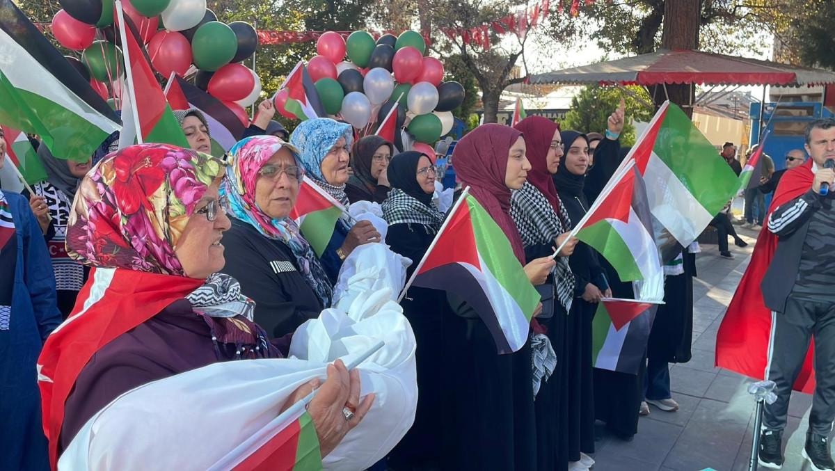 Daha sonra kalabalık ellerinde Türk ve Filistin bayraklarıyla Aktekke 15 Temmuz Demokrasi Meydanı'na kadar yürüdü.