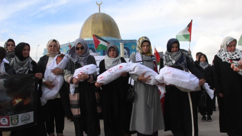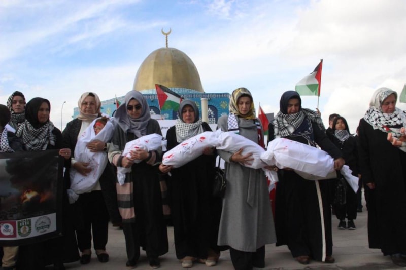 Kalbi Filistin için atan, yüreği Gazze'de çarpan, Filistinli kadınların, Filistinli annelerin ve çocukların acısını kurşun yarası gibi yüreğinde taşıyan vicdan sahibi değerli katılımcılar, biz aylardır bir büyük soykırıma uğrayan ilk kıblemiz Mescid-i Aksa için, Kudüs için, bombardıman altındaki Gazze için buradayız. Bomba seslerinden tir tir titreyen çocuklar için, Gazzeli kadınlar için, anneler için buradayız. Vurulan, yıkılan insanlık için buradayız. Acımasız, vicdansız ve duyarsız insanlar için ve insan hakları, kadın hakları örgütlerinin duyarsızlıkları için buradayız. Mazlumlar ve masumlar için buradayız. Şehitlerimiz için buradayız. Çaresiz gözü yaşlı analar ve kadınlar için buradayız. Vicdanların sesi olmak için buradayız. Kana doymayan, işgalci, katil, terörist, siyonist İsrail'i lanetlemek; mazlum Filistinli kadınların ve çocukların haklı davasına destek vermek için buradayız. Kudüs'e selam olsun, Gazze'ye selam olsun.