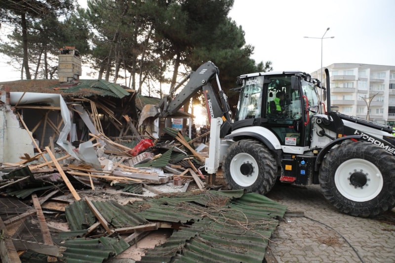 Yıkım öncesinde İlçe Emniyet Müdürlüğü, itfaiye, zabıta ekipleri ile elektrik ve doğalgaz dağıtım şirketleri, bölgede güvenlik önlemleri aldı. Gerekli tedbirlerin tamamlanmasının ardından ekipler, iş makineleriyle yıkım çalışmalarına başladı.