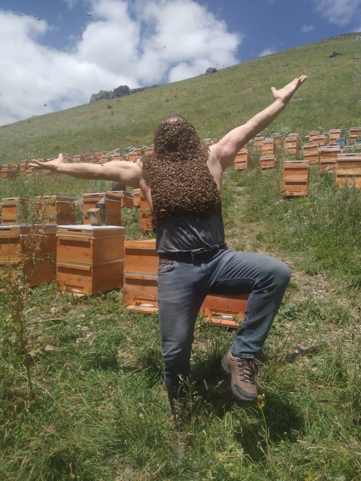 Kafkas arısı dünyanın 4 ırkından, 1 tanesidir. Özelliği ise dilinin uzun olması… Çiçeklerin derinliğinden balı almasıyla biliniyor. Kafkas arısı aynı zamanda çok uysaldır. Şu anda yaşadığım atmosfer inanılmazdır. Arının merkezi içerisinde olduğum için tamamen arıların çıkardığı melodi sesini duyuyorum. Ve o merkezin içerisindeki sıcaklık, tamamen serinliğe dönüştü. Çok güzel bir duygu ve aynı zamanda tehlikeli. Tabii bunu herkesin yapmasını tavsiye etmem.