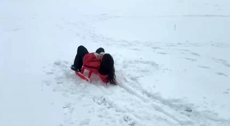 Sarıkamış’ın kar ile güzel olduğunu ifade eden Mir Bedirhan Aslantatar ve ablası Nazenin Sena Aslantatar, "Sarıkamış’a kar yağdı. Bizde kızak kayıyoruz. İnşallah kar daha çok yağar" diye duygularını dile getirdiler.