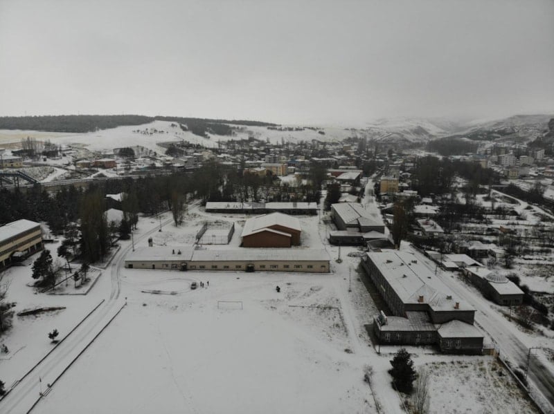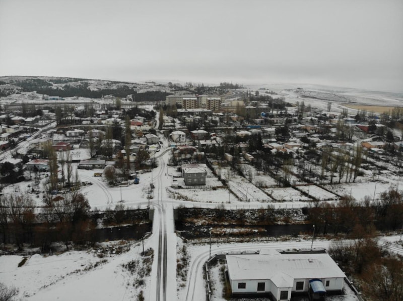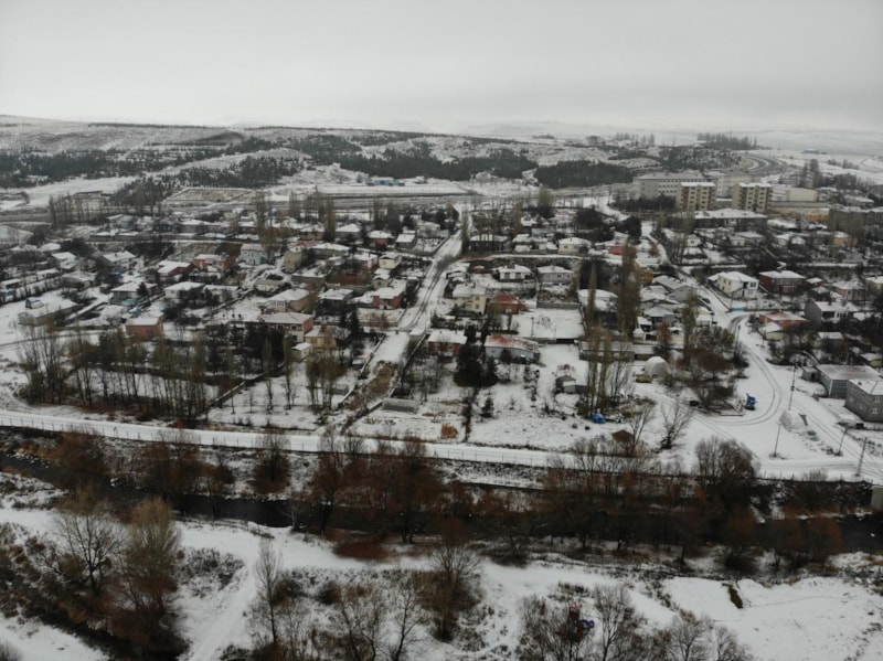 Öte yandan yağan kar ile beyazlara bürünen Susuz ilçesi havadan görüntülendi.