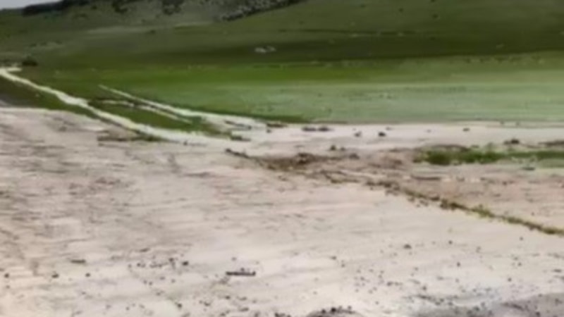 Kars'ın Akyaka ilçesi sağanak yağmura teslim oldu. Yaklaşık 20 dakika süren yağmur, sele neden oldu.