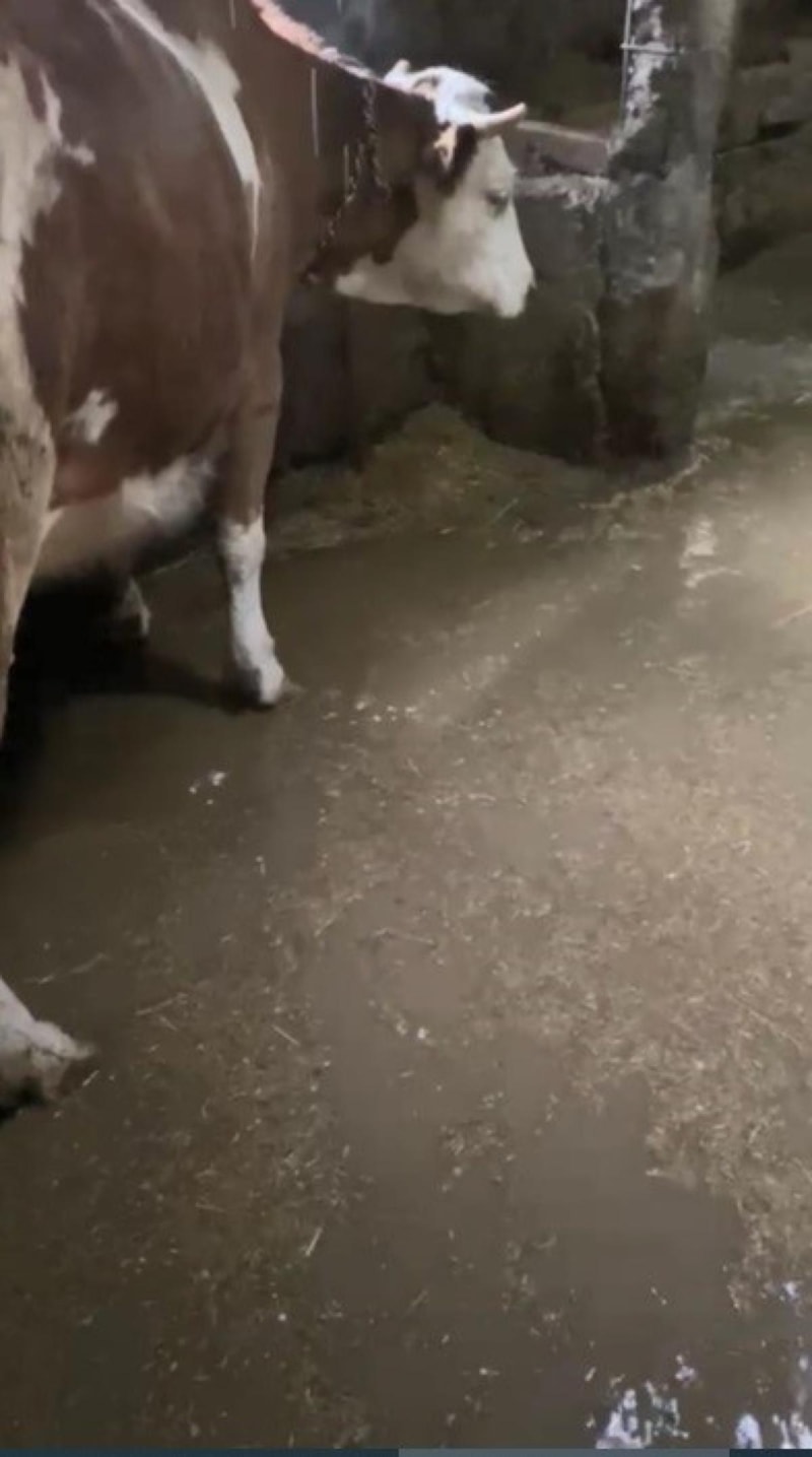 Kars'ın Akyaka ilçesinde etkili olan sağanak yağış nedeniyle dereler taştı, ahırlar sular altında kaldı.