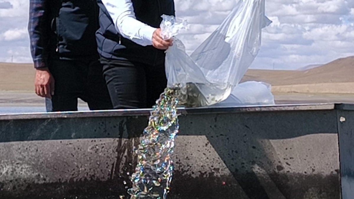 Balık taşıma kamyonuyla getirilen oksijen bastırılmış şeffaf poşetlere konulan balıklar, Tarım ve Orman İl Müdürü Enver Aydın'ın gözetiminde, Türkiye-Ermenistan sınırındaki Arpaçay Baraj Gölüne kayıklarla bırakıldı.