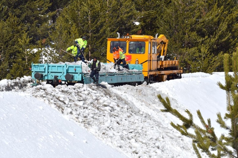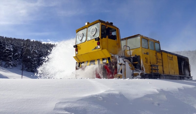 Türkiye Cumhuriyeti Devlet Demiryolları (TCDD) ekipleri de 2 bin 70 metre olan Aşıt Tüneli'ndeki kırdıkları buzları tünel dışına taşıyor.