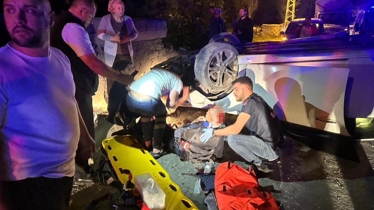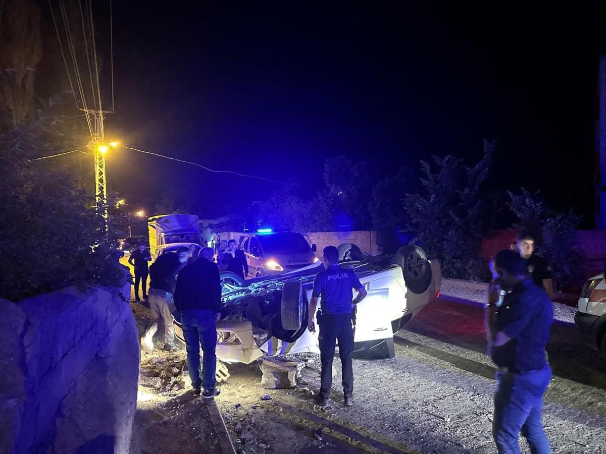 Takla atarak sırt üstü kalan otomobilde 2 kişi yaralandı. Durum sağlık ve itfaiye ekiplerine bildirildi.