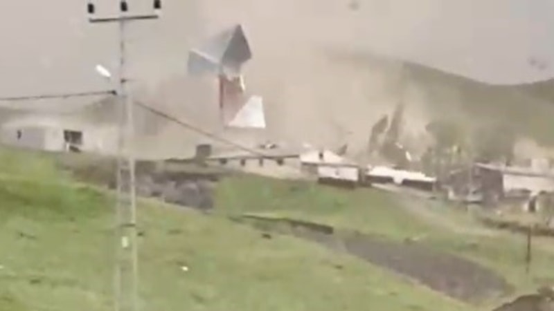 Cep telefonuyla kaydedilen görüntülerde, çatıdan kopan parçaların etrafa savrulması yer alıyor.