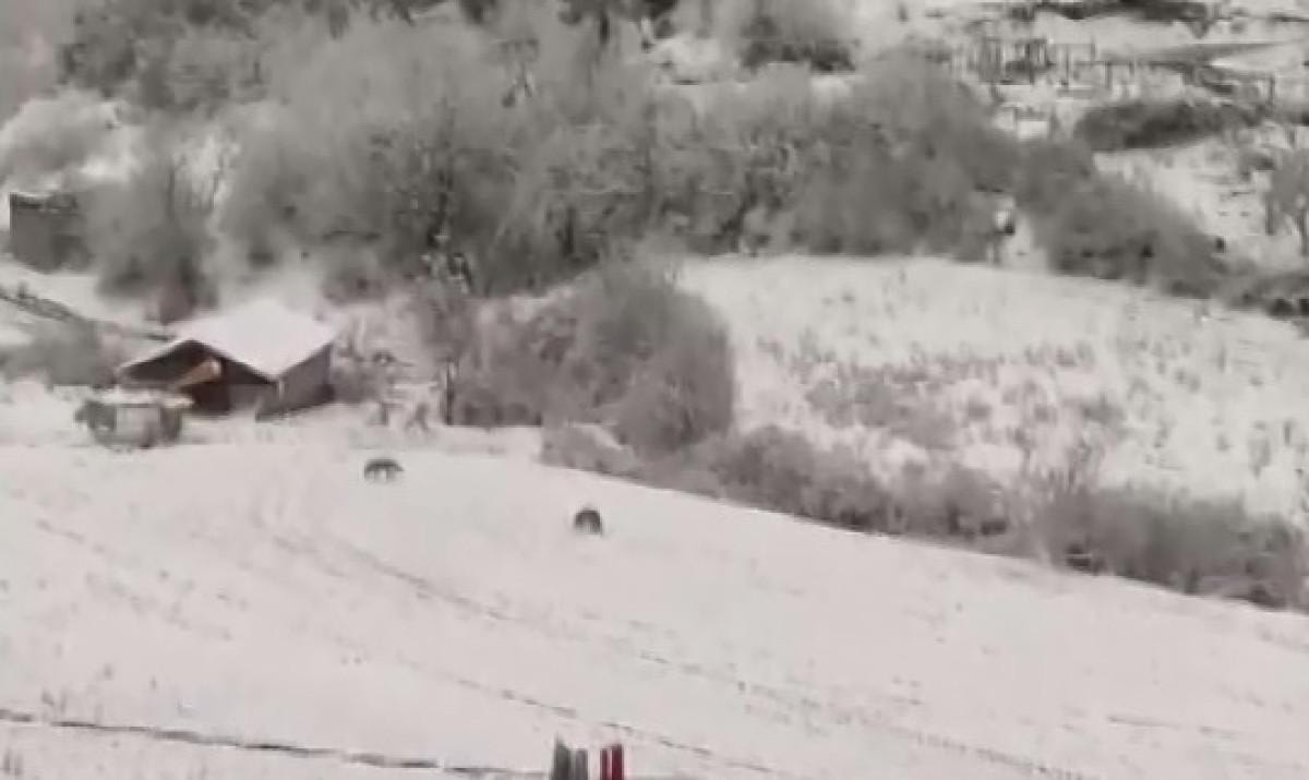 Kar kalınlığının yarım metreyi geçtiği bölgede kurtlar Yılanlı köyüne gelerek yiyecek aradı.