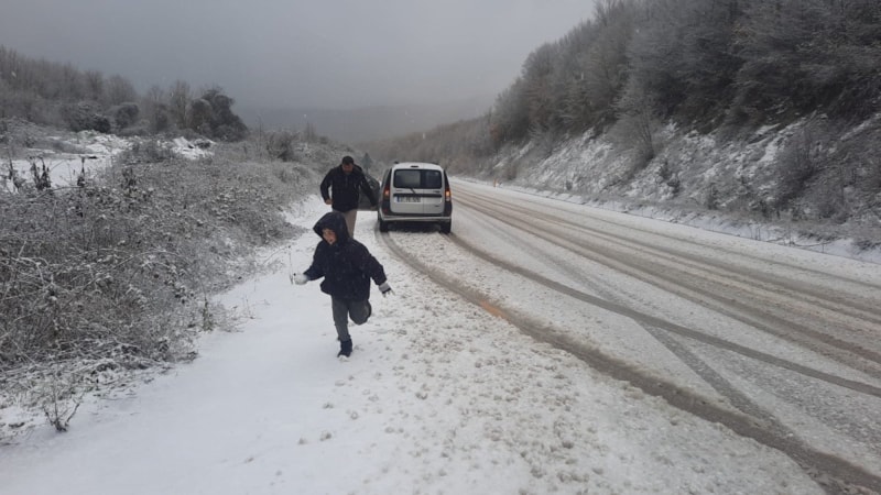 Çocuklar kar topu oynayarak eğlendi. Kar nedeniyle 202 köy yolu ise ulaşıma kapandı.