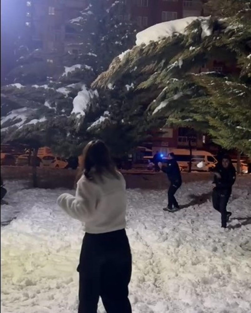 Şehirde birkaç gün etkili olan kar yağışını fırsata çeviren gençler, Melikgazi ilçesinde bulunan Necmettin Erbakan Parkı civarında devriye görevi yürüten polis ekiplerini kartopu oynamaya davet etti.