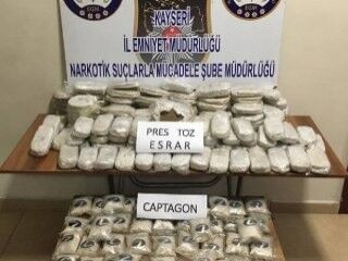 Ekiplerin Malatya- Kayseri karayolunda düzenlediği operasyonda, durdurulan otomobilde arama yapıldı. Aracın arka tampon, ön silecek ve yedek lastik kısmına gizlenmiş 46 kilo 300 gram toz esrar ve 43 bin 900 captagon hap ele geçirildi. Araçtaki A.H.(46) ve R.D. (18) ise gözaltına alındı. İki şüpheli, sorgulanmak üzere Emniyet Müdürlüğü'ne götürüldü.