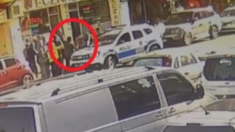 Görüntülerde; Avukat Ayan ile oğlunun polis arabasının önünde durduğu sırada şüpheliler tarafından iteklendiği, karşılıklı yumruklaşmaların yaşandığı görüldü.