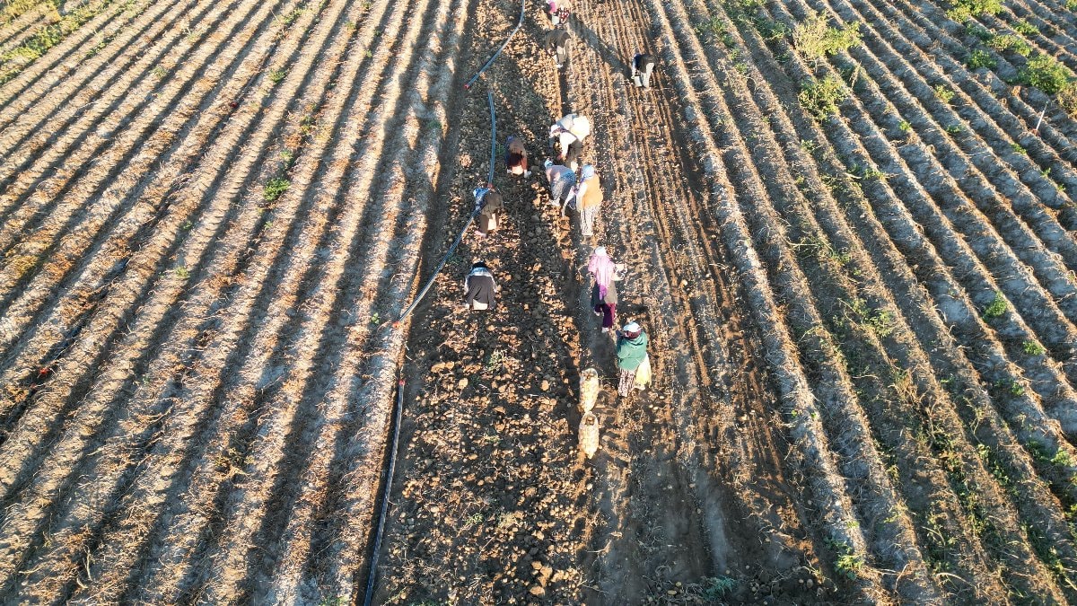 - Mevsimlik işçiler tarafından toplanan patatesler, arz fazlası nedeniyle iç piyasa yerine dış ülkelere gönderiliyor.