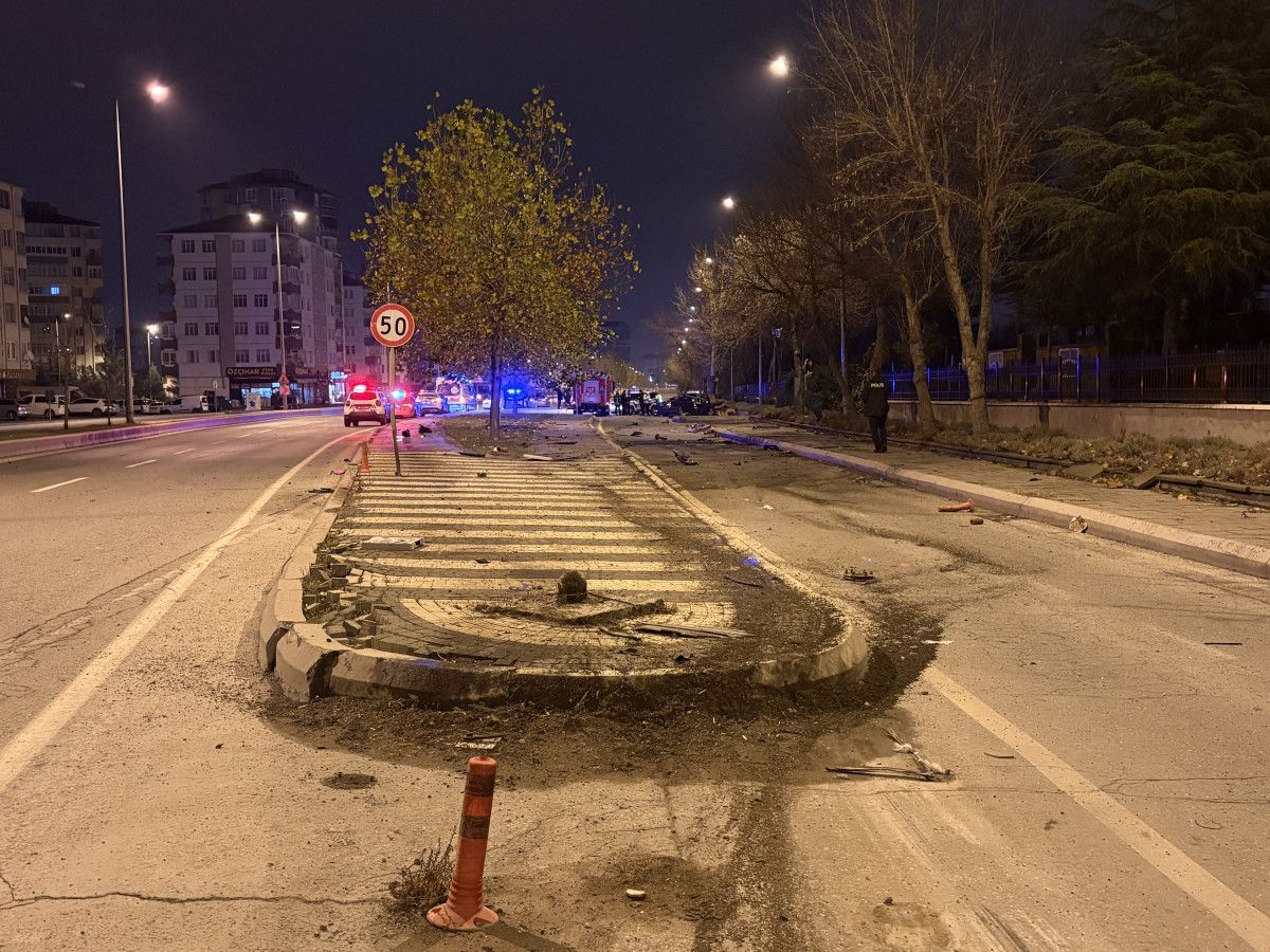 Çarpmanın etkisiyle savrulan otomobil levhaları devirerek, bir ağaca çarparak 200 metre sonra ancak durabildi. İhbar üzerine bölgeye polis ve sağlık ekipleri sevk edildi.