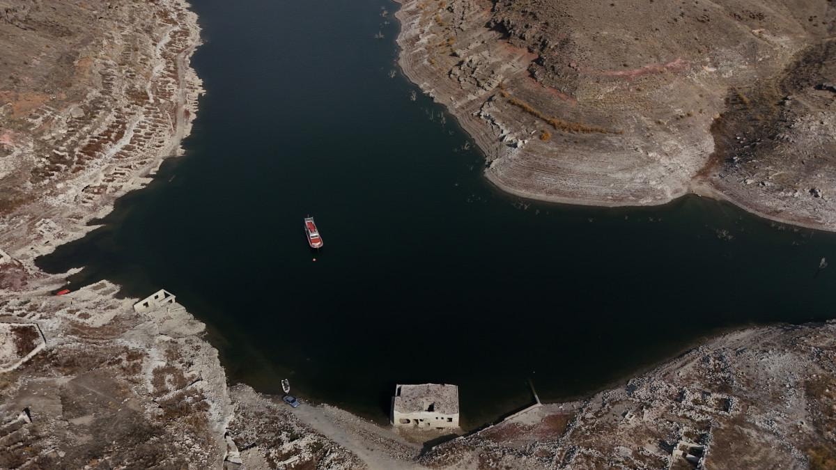 Kocasinan ilçesinde bulunan Yamula Barajı'nda da kuraklık nedeniyle sular çekilirken, su altında kalan eski Kuşçu köyünün kalıntıları gün yüzüne çıktı. Havadan görüntülenen baraj, yaşanan kuraklığı da gözler önüne serdi.