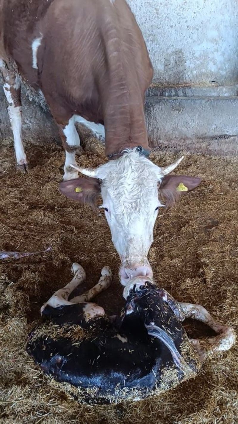 Görüntülerde anne ineğin buzağısını yalayarak temizlediği, kokusunu tanımaya çalıştığı ve vücudunun çeşitli bölümlerini kokladığı görüldü