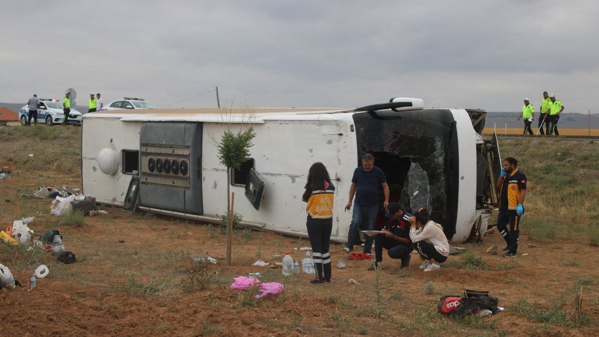Karadeniz'den yola çıktığı öğrenilen tur otobüsü, Sivas-Kayseri kara yolu Sultanhanı mevkinde şarampole devrildi.