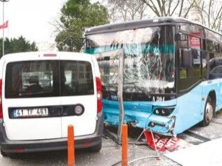 91E Beyazıt-Göztepe (Bağcılar) hattında çalışan halk otobüsü, Beyazıt Meydanı'nda henüz belirlenemeyen nedenle yaya yoluna girdi. Otobüs, park halindeki çok sayıda araca çarparak durabildi.