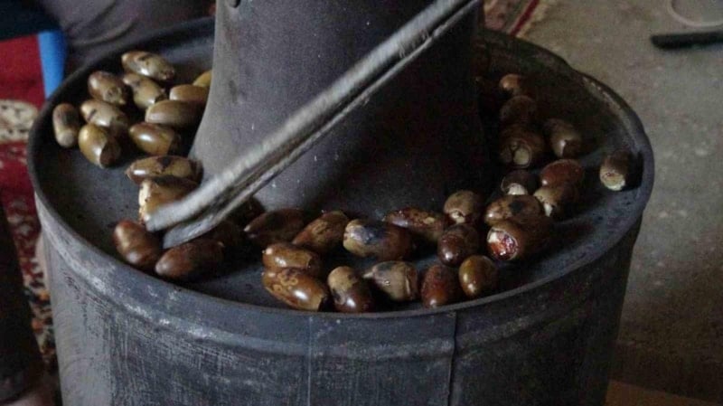 Batman’ın Gercüş ilçesinde kış mevsiminin vazgeçilmez yemişlerinden meşe palamudu sonbaharda toplanıp kışın tüketiliyor.