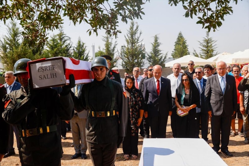 Kayıp Şahıslar Komitesi (KŞK) tarafından Birleşmiş Milletler (BM) kontrolündeki ara bölgede yer alan Truilli köyünde yapılan kazı çalışmalarında kemik kalıntıları bulunan ve kimliği tespit edilen Eşref Salih için Tuzla'da askeri tören düzenlendi. Törene; KKTC Cumhurbaşkanı Ersin Tatar, Cumhuriyet Meclisi Başkanı Zorlu Töre, Güvenlik Kuvvetleri Komutanı Tümgeneral Osman Aytaç, şehidin yakınları ve diğer yetkililer katıldı.