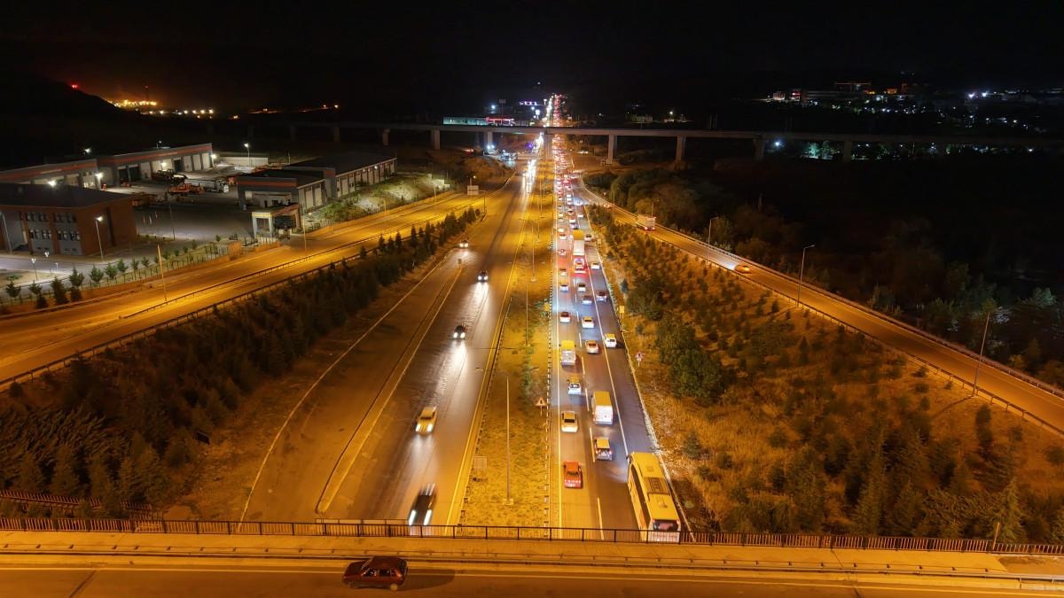 Yoğunluğun etkili olduğu noktalarda İl Emniyet Müdürlüğü’ne bağlı ekipler görev aldı. Kara yolundaki araç trafiği havadan görüntülendi.