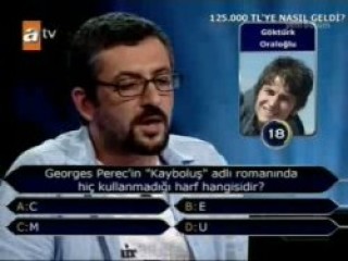 Yakın arkadaşı Göktürk Oraloğlu'nu aratan yarışmacı oldukça zor bir soru olan 9'ncu soruyu sordu. Henüz şıklar okunmadan "B şıkkı E" yanıtını veren Oraloğlu'na tereddüt etmeden güvenen yarışmacı doğru yanıtı verdi. O an stüdyoda büyük bir alkış koptu. Hayretler içerisinde kaldığı görülen Kenan Işık da alkışlayarak, "Böyle bir adetim yok ama Göktürk'ü alkışlıyorum. Bravo. Sizi 125 bin liraya getirdi." dedi.