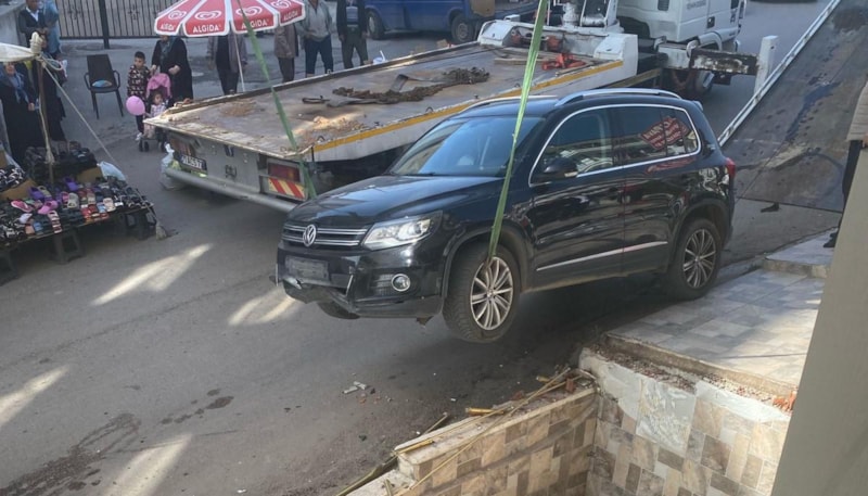 Araç, caddenin sonunda kurulu olan semt pazarına doğru yöneldi. Bir apartmanın önünde bulunan reklam tabelası ve bahçe duvarının demir korkuluğuna çarpan aracın askıda kalması büyük bir faciayı önledi.