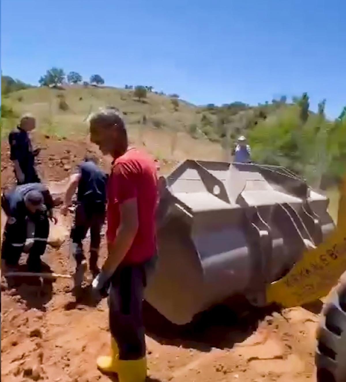 İş makinasının da desteğiyle yolun bir kısmını kazılarak oğlağa ulaşıldı.