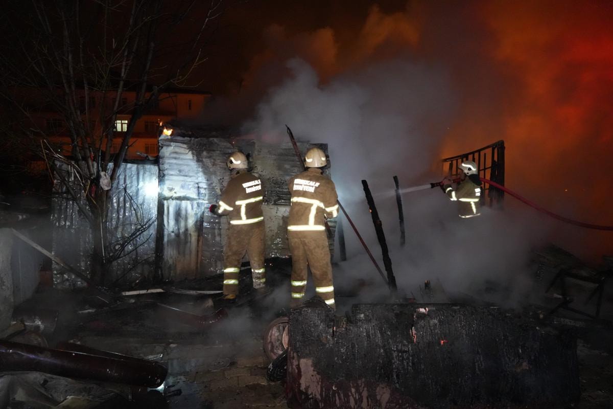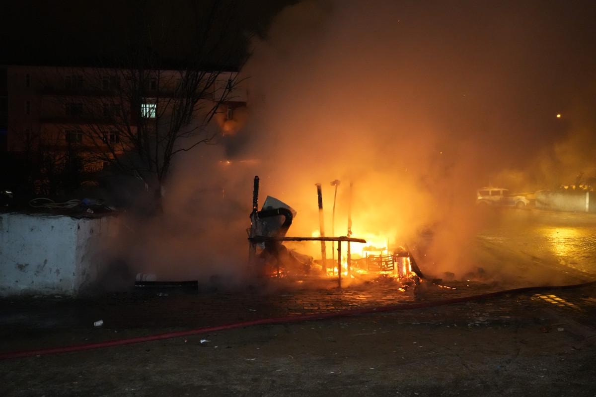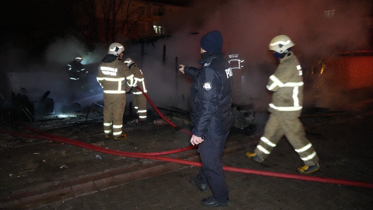 Maddi hasarın oluştuğu müştemilatta polis ekipleri inceleme başlattı.