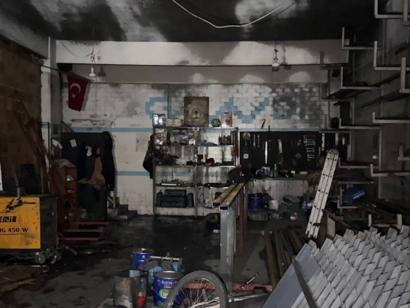 Şiddetli patlama kısa sürede dükkan içerisinde büyük hasara yol açarken, çevrede panik oluştu.