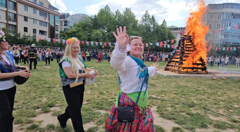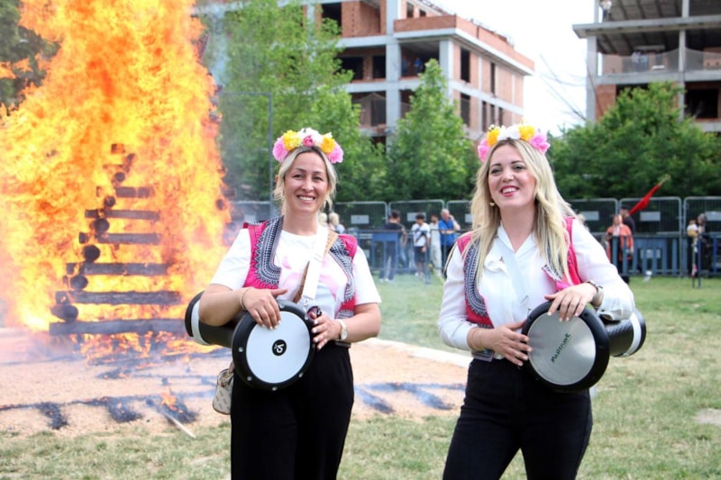 Yürüyüşün ardından millet bahçesine gelen kortej daha sonra büyük Kakava ateşini yaktı.