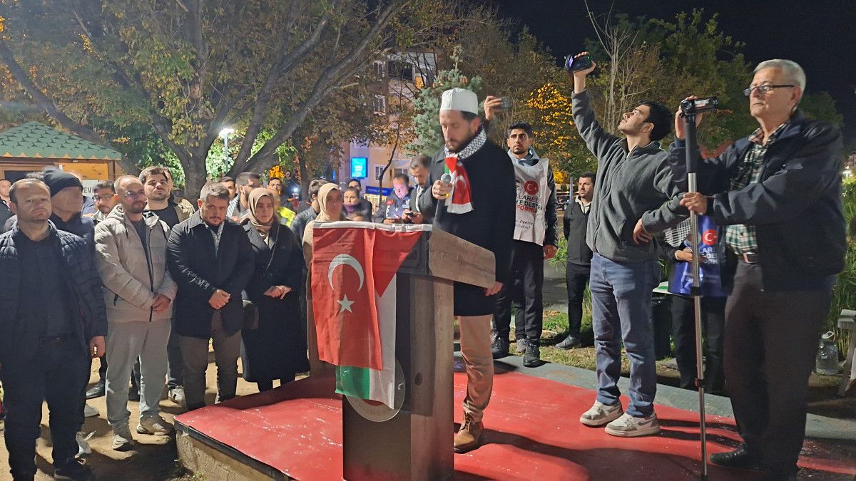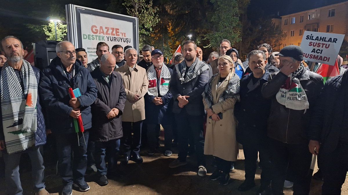 Millet Bahçesinde topluluk adına basın açıklaması yapan Kadir Metin Akbaş, Gazze'ye destek vermek için yürüdüklarini ifade ederek Gazze'nin pazarlık konsu olmadığını insanlık meselesi olduğunu söyledi.