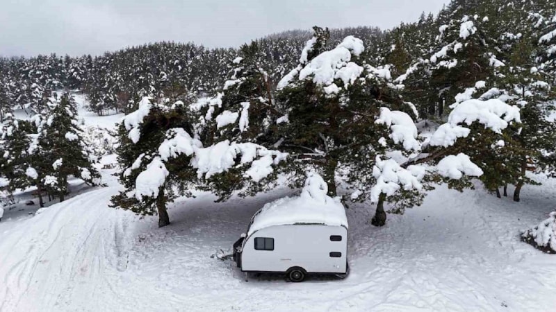 Göl etrafında konaklayan ziyaretçilerin kimi lüks karavanlarıyla kışın keyfini sürerken, macera arayanlar ise bembeyaz örtünün üzerine çadırlarını kurdu.
