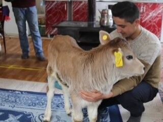 Pirge ailesi, eve aldığı buzağıya sobalı odada bakıyor. Buzağı, soğuk hava nedeniyle oturma odasında 5 kişilik Pirge ailesinin çocukların büyük ilgisiyle yatıp kalkıyor. Bu yıl dört buzağı doğumu gerçekleştiğini ve hepsini de üşümemesi için evinde sakladığını söyleyen Adem Pirge, "Bizim bu bölge yüksek olduğu için çok kar yağıyor. Yeni doğan buzağılar dünyaya geldiği zaman biraz cansız oluyorlar. Onun için birkaç gün gerekirse bir hafta evde saklıyorum, iyice kendine geldikten sonra annesinin yanına bırakıyoruz.” dedi.