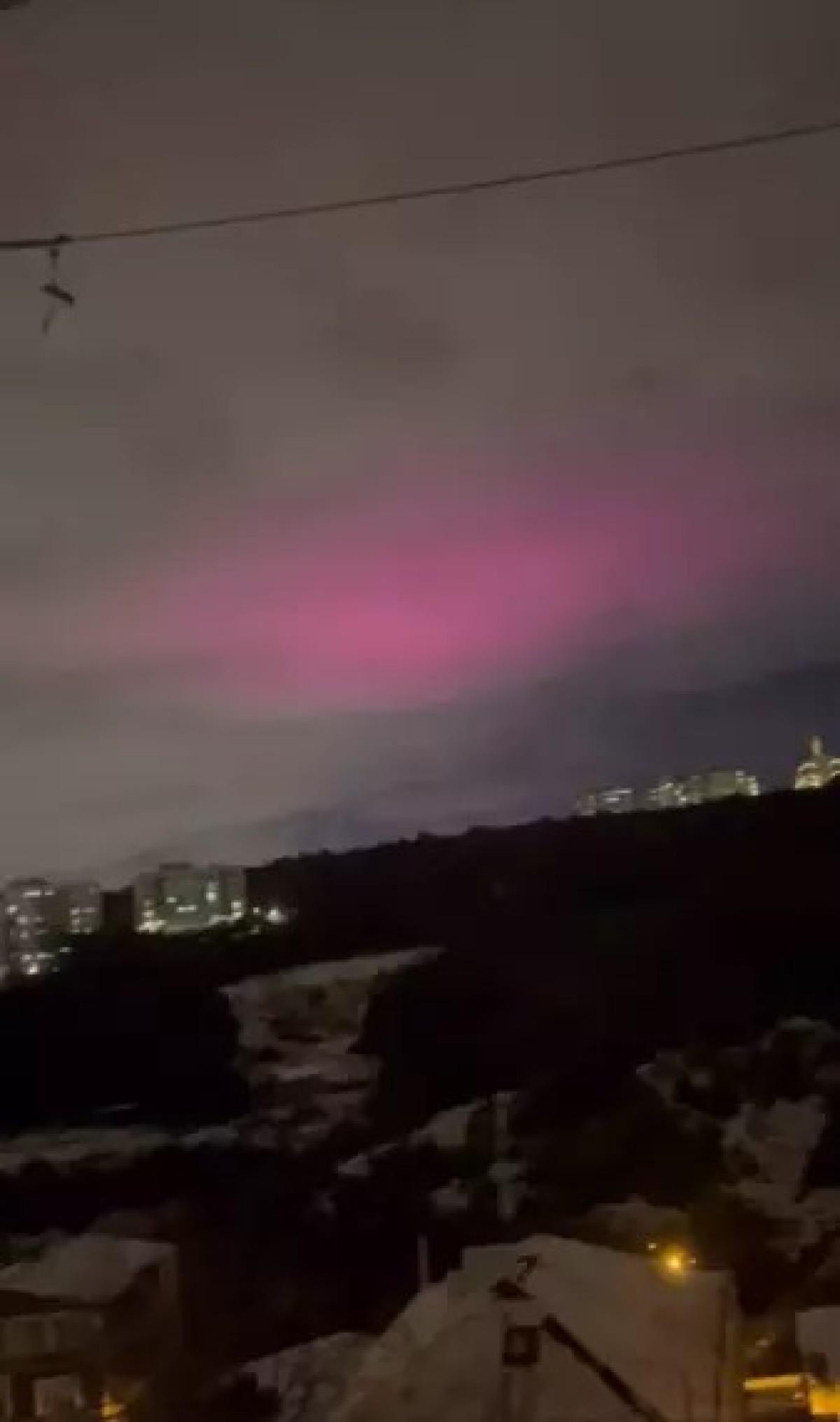 İstanbul'da Kağıthane ve çevre ilçelerde gece saatlerinde gökyüzünde pembe bulutlar görüldü.