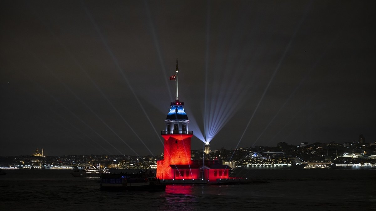 Kız Kulesi, bu akşam 21.00'den itibaren yapılan ışık ve lazer şovuyla açıldı.