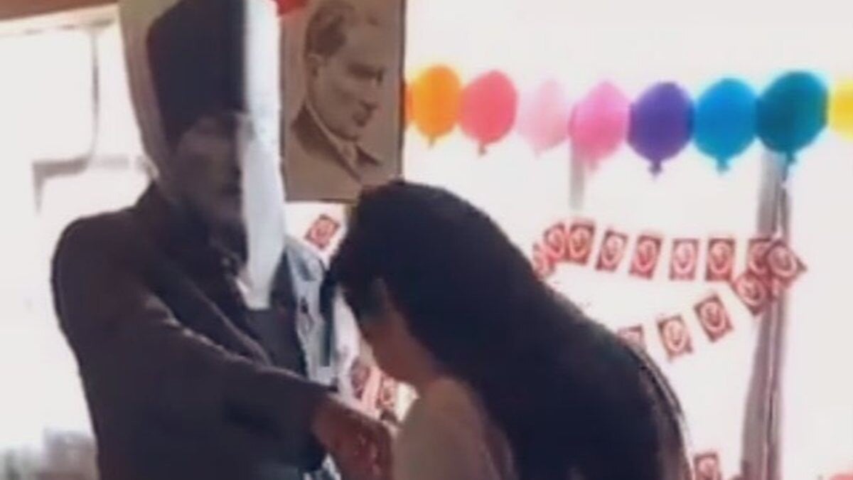 KIZ ÖĞRENCİ, ATATÜRK MASKELİ ŞAHSIN ELİNİ ÖPTÜ