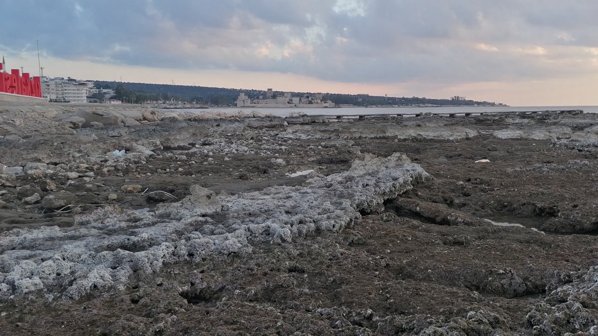 Mersin'in Erdemli ilçesindeki UNESCO Dünya Miras Geçici Listesi'ndeki Kızkalesi sahilinde deniz suyu çekildi.