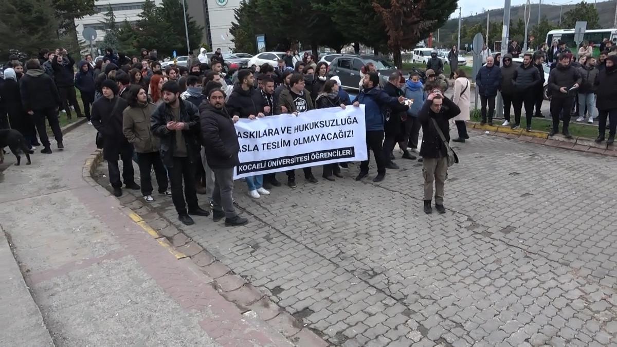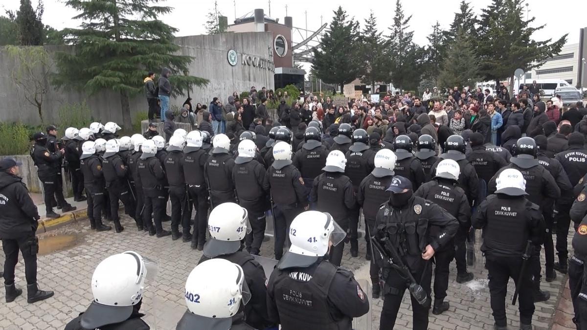 Kocaeli Üniversitesi (KOÜ) Umuttepe Kampüsü A kapısında İBB Başkanı Ekrem İmamoğlu’nun gözaltına alınmasını protesto etmek için akşam saatlerinde toplanan öğrencilerin de bulunduğu yaklaşık 100 kişi, önce İzmit Kent Meydanı’na yürümek istedi.